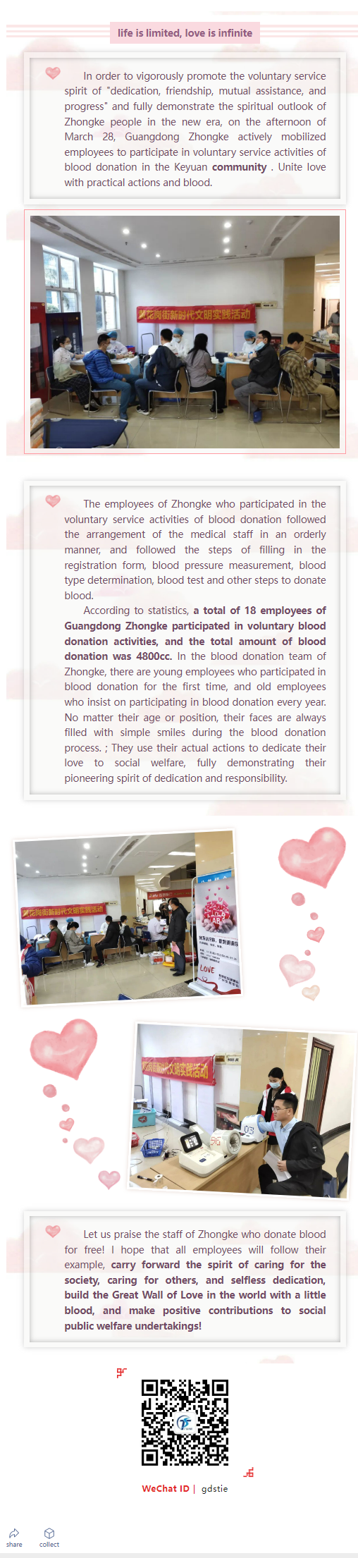 "Life is limited, love is infinite" —— Guangdong Zhongke employees actively participated in voluntary service activities of blood donation
