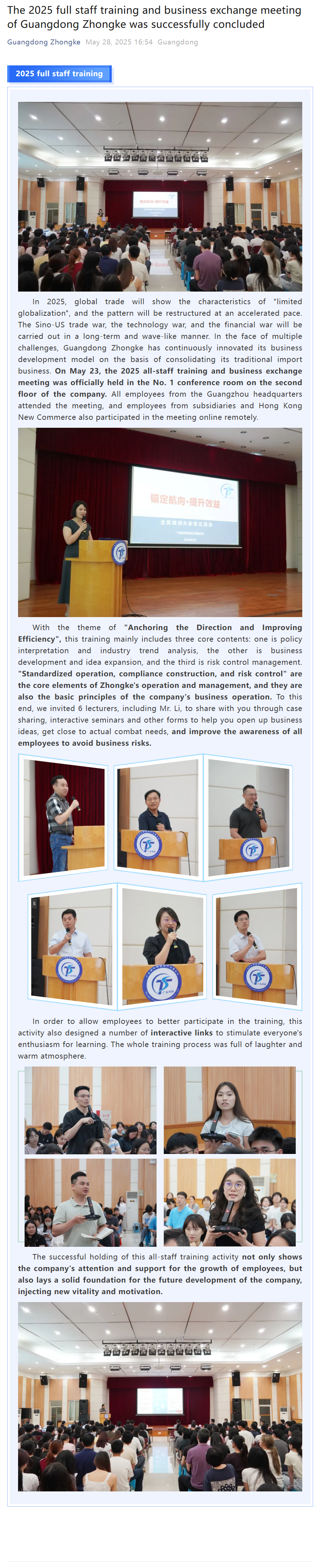 The 2025 full staff training and business exchange meeting of Guangdong Zhongke was successfully concluded