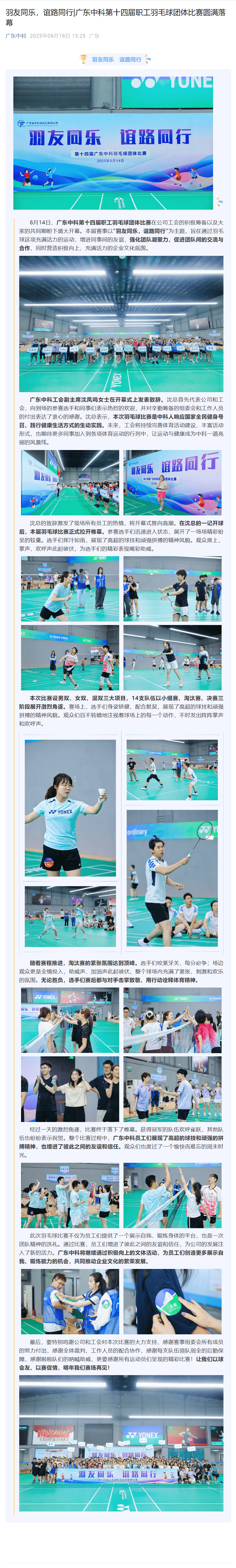 羽友同乐,谊路同行|广东中科第十四届职工羽毛球团体比赛圆满落幕