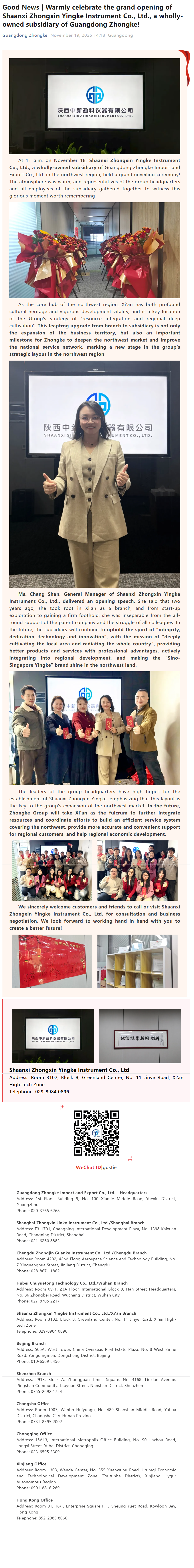 Good News | Warmly celebrate the grand opening of Shaanxi Zhongxin Yingke Instrument Co., Ltd., a wholly-owned subsidiary of Guangdong Zhongke!